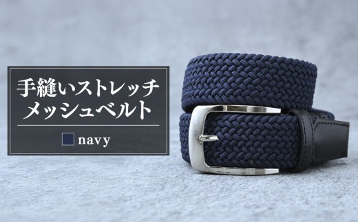 ベルト 手縫いストレッチメッシュベルト 35mm ネイビー | ベル…