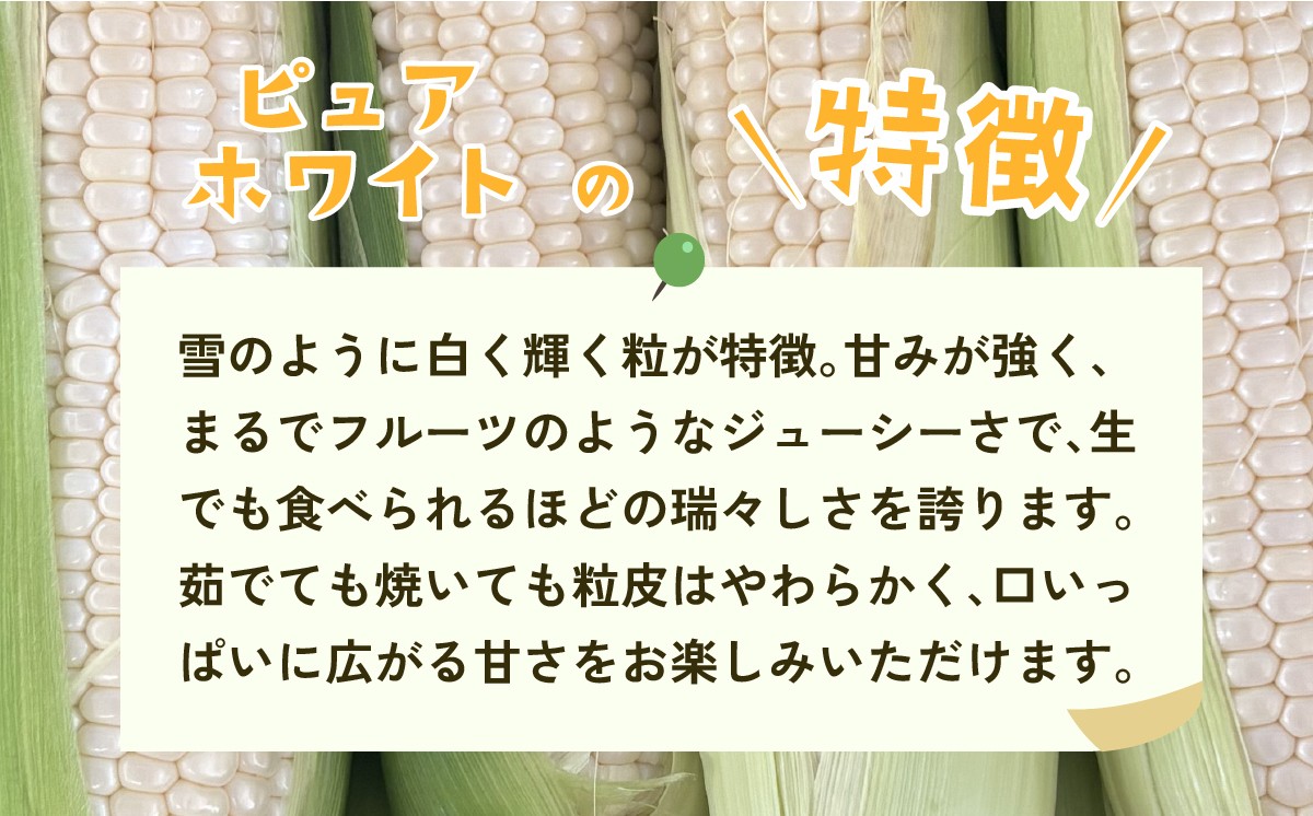 生でも食べられる、極甘とうもろこし「ピュアホワイト」を6kg(約15本前後)でお届けいたします。