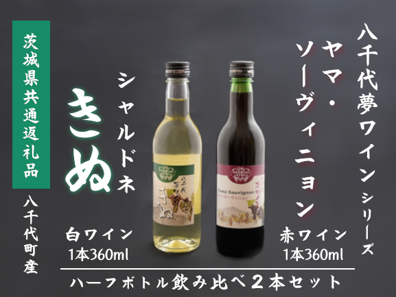 チョイス限定 チョイスPayポイントと交換できる品 【 茨城県共通返礼品 / 八千代町 】ワイン 赤 白 ハーフボトル 飲み比べ 2本 セット ヤマ・ソーヴィニョン きぬ 八千代夢ワイン【 ワイン お酒 酒 葡萄 ブドウ 茨城県白 赤 飲み比べ 背飲み比べセット 人気 】