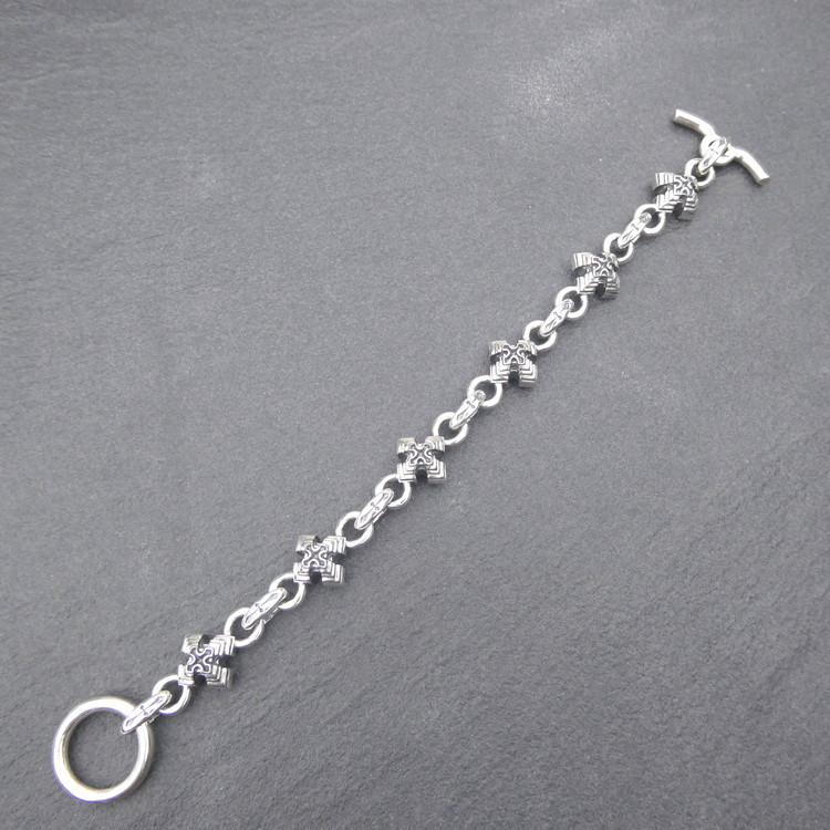 クロスの重ね合わせにより小ぶりながら重厚感ある仕上がりとなっている Pyramid cross bracelet