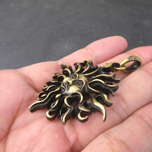 神の威厳と荒々しく燃え盛る力を宿した、圧倒的な存在感を放つ逸品。 God sun pendant