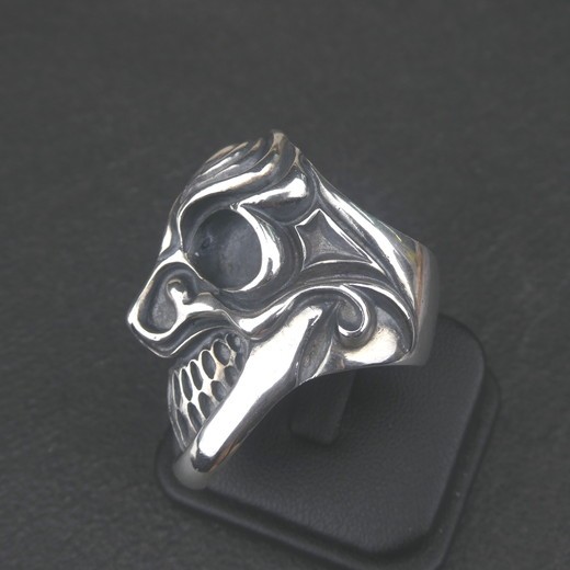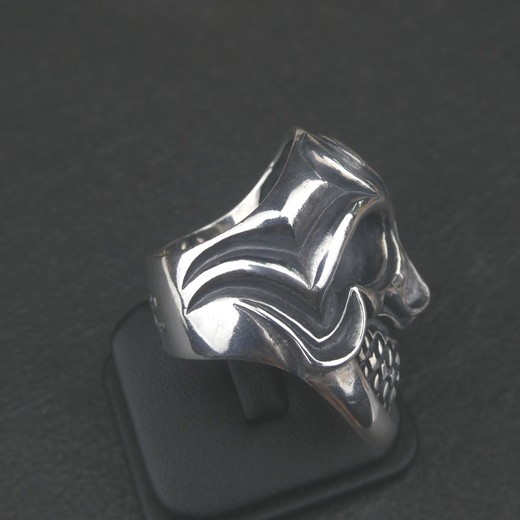 圧倒的な存在感。巨大スカルが指先を支配する。 The skull of twofacedness ring