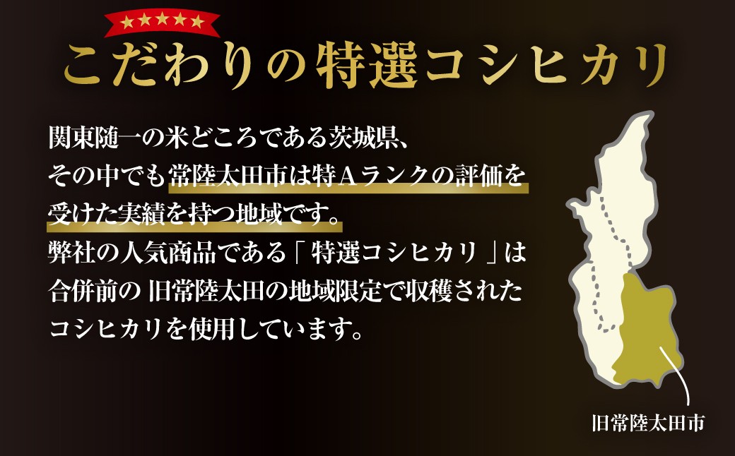 「特選 常陸太田産コシヒカリ」は常陸太田の地区限定で収穫されたコシヒカリです。
