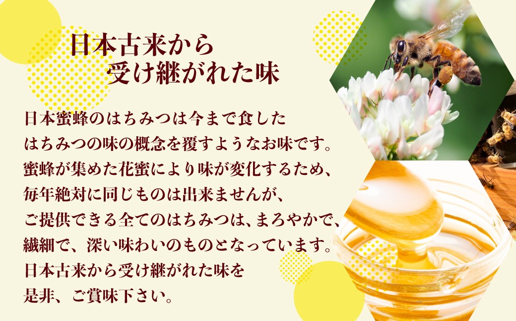 大自然の中で自由に育てた日本蜜蜂の至高のはちみつ。