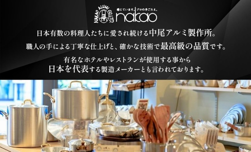 名だたる老舗ホテル・有名レストランのシェフたちが愛用する厨房器具の製造メーカー、中尾アルミ製作所。