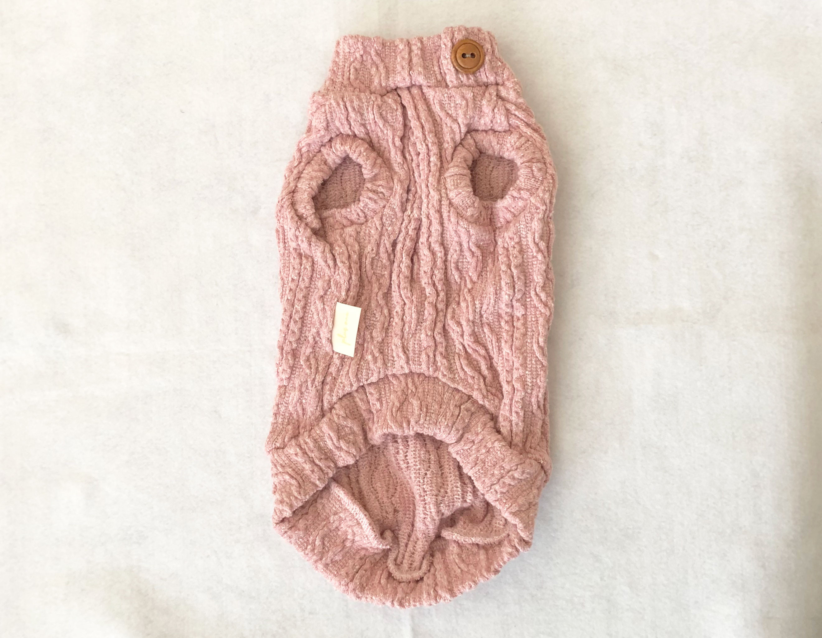 アラン風ニット生地で手作りしたわんちゃん用ニットセーター 犬用 セーター くすみピンク size2L