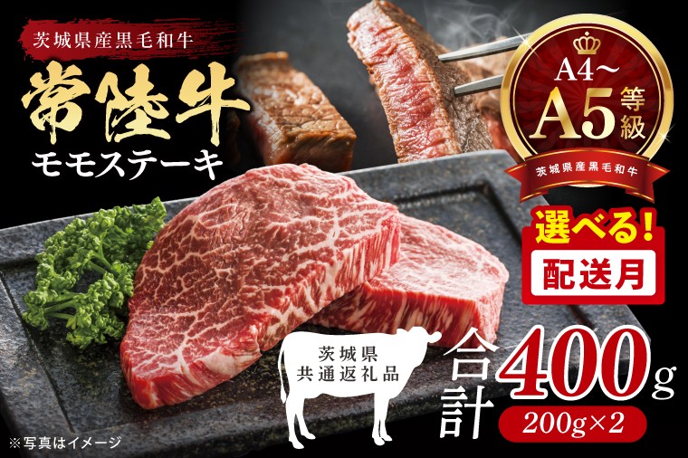 チョイスPayポイントと交換できる品 高級食材【常陸牛】をお楽しみください。 【選べる配送月】最高級A4.A5ランク 常陸牛モモステーキ400g(200g×2)【人気肉 お肉 牛肉 和牛 黒毛和牛 国産黒毛和牛 モモ肉 ステーキ 国産牛 焼肉 焼き肉 バーベキュー BBQ A5 ブランド牛】(CR105)