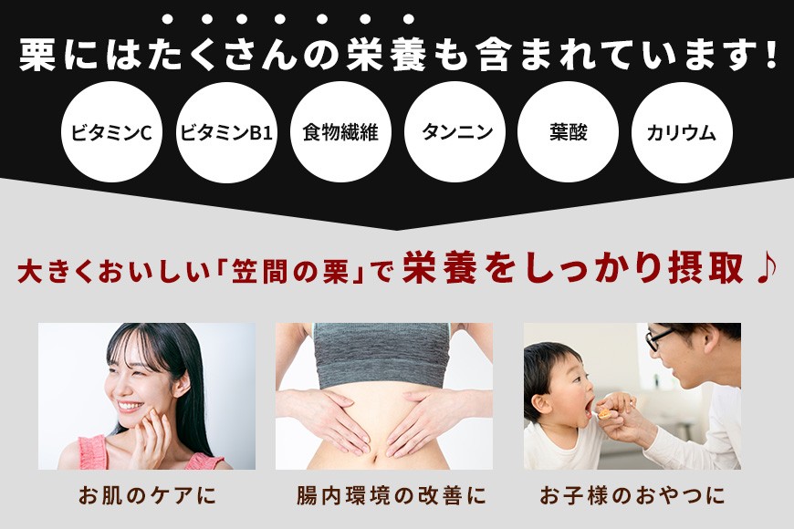 ※しっかりとチェックして虫食いを選別し、きれいな栗をお届けできるよう努めておりますが、まれに混在してしまう場合がございます。ご了承ください。