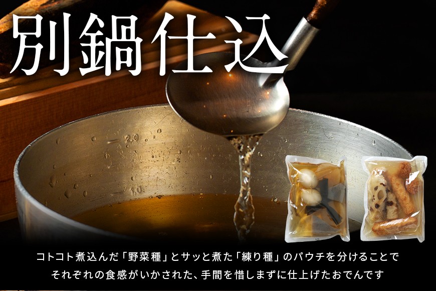 別鍋仕込みは、練り種と野菜とを別々の鍋で火加減・味加減の頃合いを見ながら調理しています。