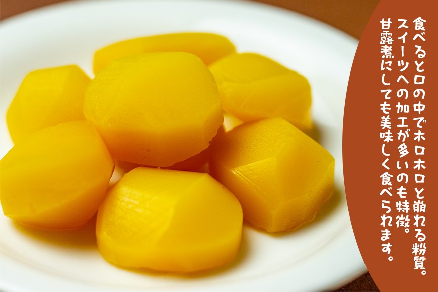 食べると口の中でホロホロと崩れる粉質。スイーツへの加工が多いのも特徴。