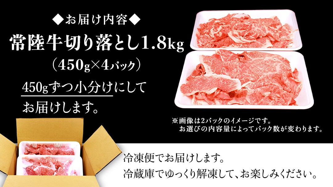 \選べる発送時期/【 常陸牛 】 切り落とし 1.8㎏(450g×4パック) 牛肉 国産 牛 肉 切り落とし肉 切落し 小分け お肉 A4 A5 ブランド牛 黒毛和牛 和牛 国産黒毛和牛 国産牛 すき焼き すきやき ( 茨城県共通返礼品 ) 小分け