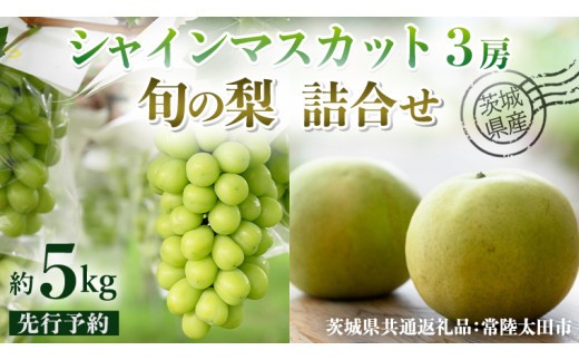 【 先行予約 】茨城県産 シャインマスカット3房と旬の梨詰め合…
