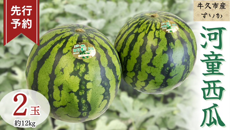 糖度が高くシャリシャリ感のある大きい西瓜です。 《 先行予約 》 牛久市産 河童 西瓜 L 2玉 ( 約 12kg ) 【 2026年6月中旬発送開始 】 果物 フルーツ Lサイズ スイカ すいか 期間限定 旬 国産 アイス シャーベット
