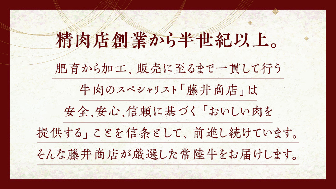 肥育から加工、販売に至るまで一貫して行う牛肉のスペシャリスト「藤井商店」が「常陸牛特選A5ヒレステーキ」をお届けします。