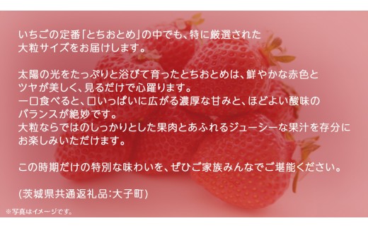 いちごの定番「とちおとめ」の中でも、特に厳選された大粒サイズをお届けします。