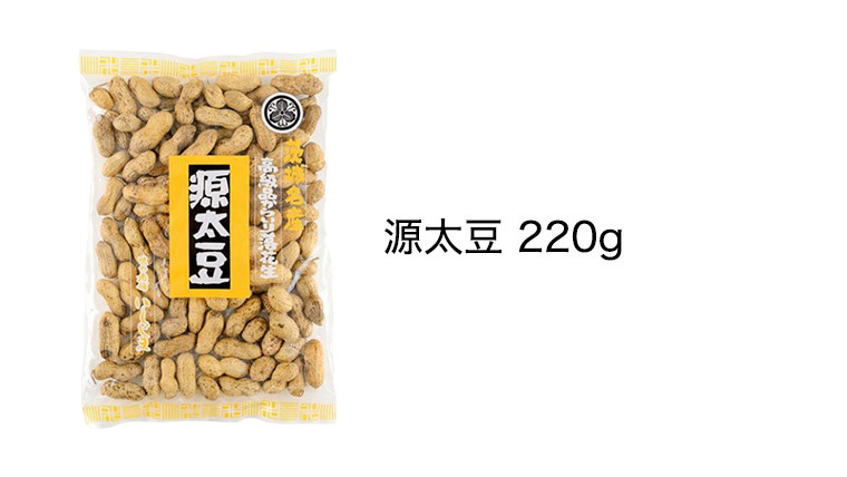| 容量 | 源太豆:220g から入り落花生:200g 干しいも(紅はるか):290g×2 落花生甘露煮:190g 製造地:茨城県(全品) |
