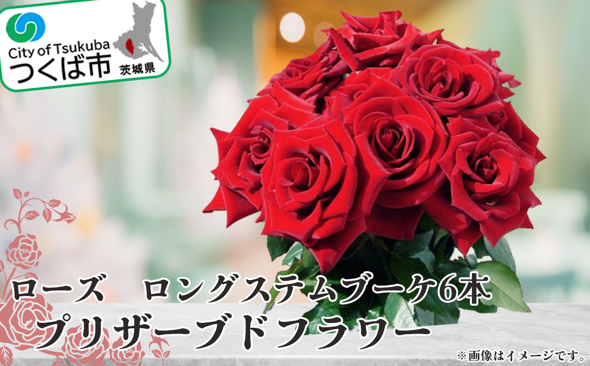 | 容量 | ■お礼品の内容について ・サイズ:約 1 輪の花径 8cm × 長さ 50cm 6 本を花束に仕上げました。生花と見間違えるほど美しいプリザーブドローズの花束です。 加工地:茨城県つくば市 |