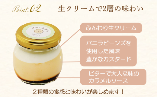 甘さ控えめなカスタードを生かすため、生クリームを絶妙に配合!さらにほろにがカラメルソースで大人な味わいになっています。
