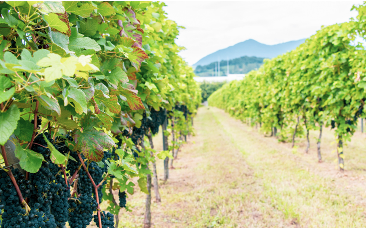 水はけのよい肥沃な土地と、筑波山から吹き降ろす寒気を含んだ筑波おろしが風味豊かな葡萄を育てます。