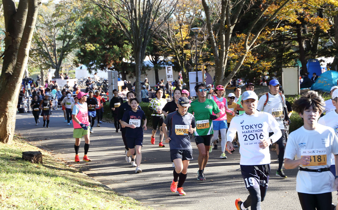 「早春の科学都市を走ろう」をキャッチフレーズに、前身となる「筑波学園マラソン大会」が誕生して、つくばマラソンは今年で45年目を迎えます。当初から、国内のマラソン大会で初めて電動自動車を先導車として採用する等、科学都市にふさわしい取り組みを続けています。第35回大会では大規模なマラソン大会としては国内で初めてウェーブスタートを導入するなど、今後もランナーのためのアップデートを続けていきます。