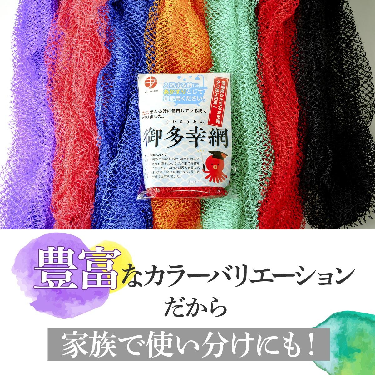 ボディタオル 御多幸網4個セット | ボディタオル あかすり 垢すり タオル 網 タコ網 日本製 ナイロン 泡立ち 手作り ハンドメイド 赤 ピンク オレンジ ブルー ライトグリーン パープル ギフト 贈答用 プレゼント 茨城県 ひたちなか市