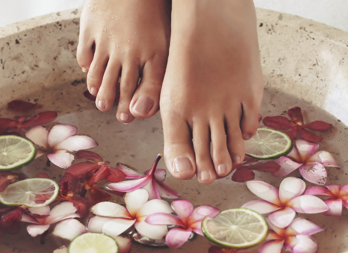 (足浴、甘皮・角質ケア、スクラブ、パック、保湿)