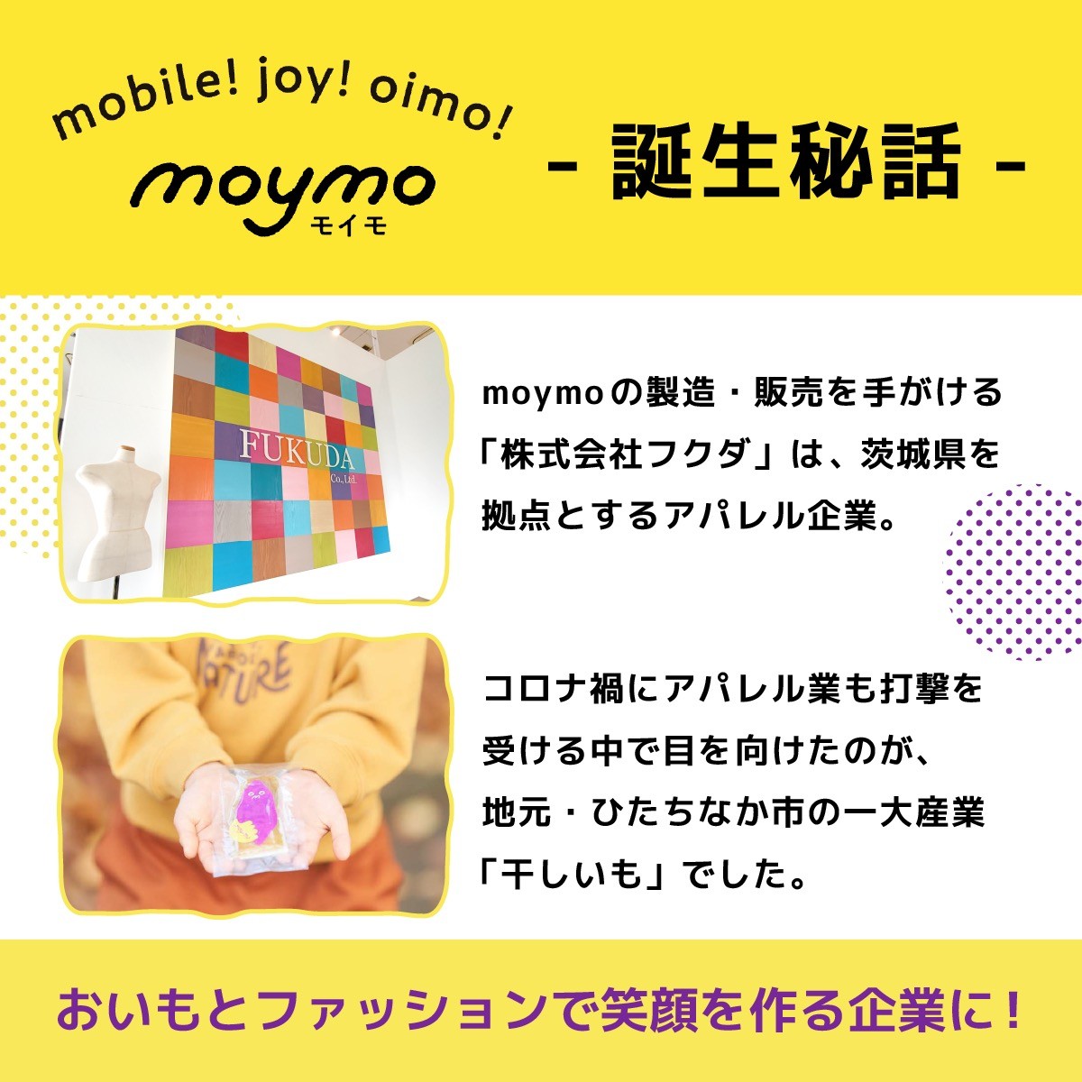 2022年の誕生以来、多くのお客様に愛していただいている、ほしいも&おいも菓子ブランド「moymo」。その製造・販売を手がける私たち株式会社フクダは、茨城県ひたちなか市を拠点として、アパレルブランド「PrimRose(プリムローズ)」「to blossom(トゥブロッサム)」を展開するアパレル企業です。