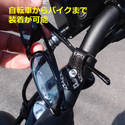 自転車やバイクのハンドルに装着して使用する本革製レザーホルダー。ヘルメットをかぶるときに落としがちなサングラスや眼鏡を一時保持するホルダーです。殺風景なハンドル周りをカラフルに彩る全7色。