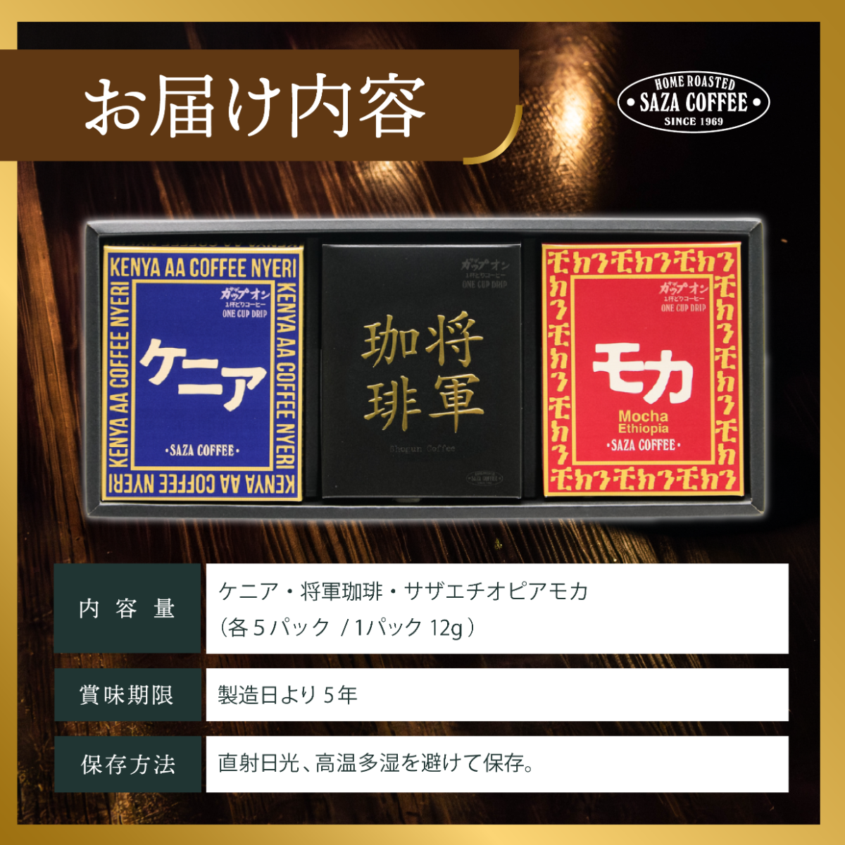 アフリカのコーヒー「ケニア」「サザモカ」オリジナルブレンド「将軍珈琲」を詰合せ サザコーヒー サザアフリカ将軍3箱詰合せ | 1杯取り サザ ドリップ エチオピア ケニア ブレンド 深煎りコーヒー ギフトドリップコーヒー 将軍 ホットコーヒー 人気 美味しい アウトドア キャンプ 高級 誕生日 内祝い シティロースト 中挽き