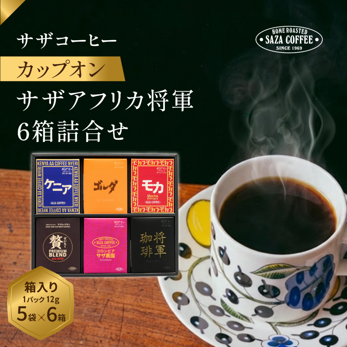 アフリカのコーヒー「ケニア」「サザモカ」、オリジナルブレンド「将軍珈琲」を詰合せ サザコーヒー サザアフリカ将軍6箱詰合せ | 1杯取り サザ ドリップ エチオピア ケニア ブレンド 深煎りコーヒー ギフトドリップコーヒー 将軍 ホットコーヒー 人気 美味しい アウトドア キャンプ 高級 誕生日 内祝い シティロースト 中挽き