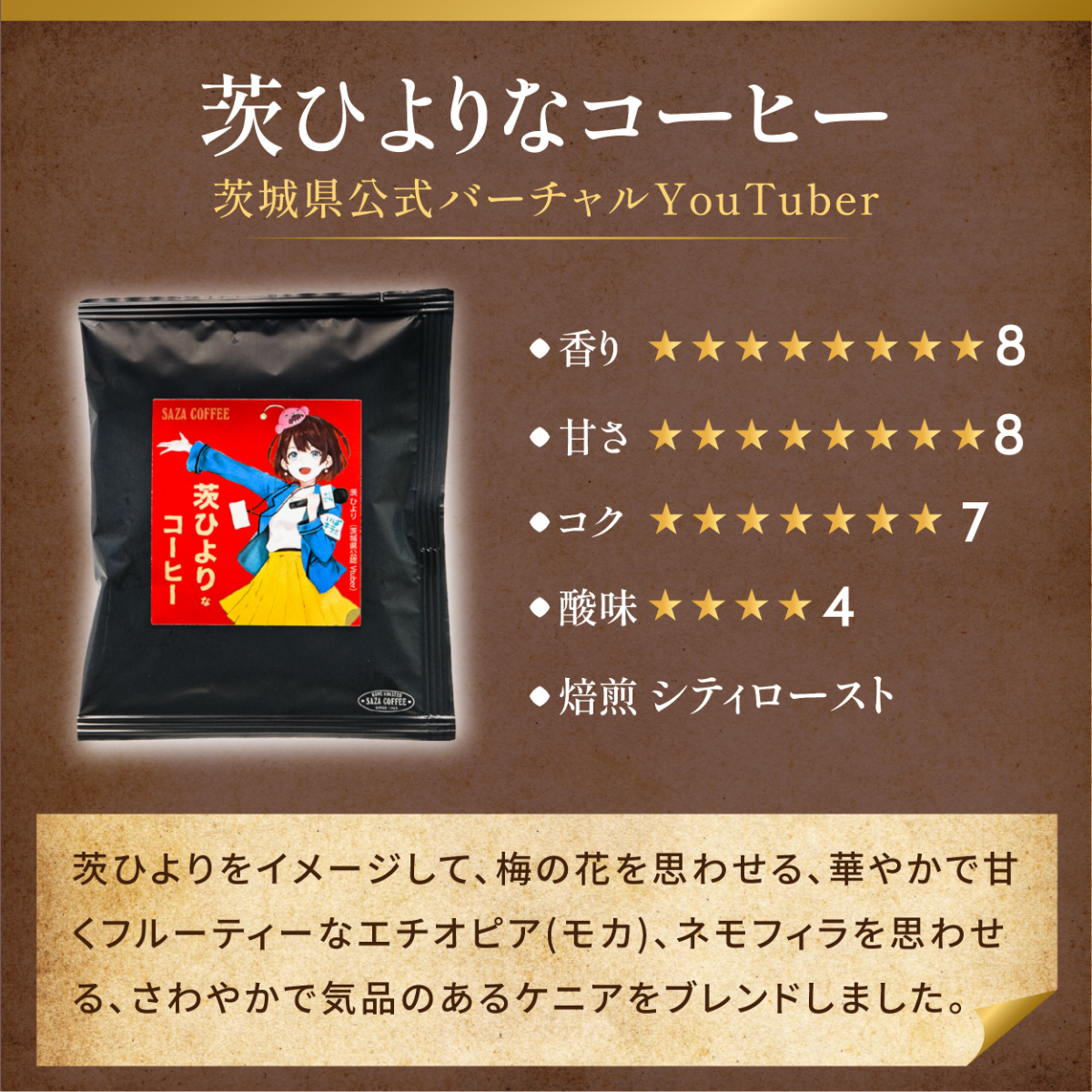 自治体では初の公認となる茨城県公式バーチャルYouTuber「茨ひより」とサザコーヒーのコラボコーヒー。