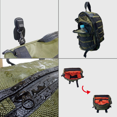 ●上蓋とサイドポケットには防水性の高いYKK社製アクアガードファスナーを使用。