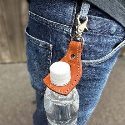 ●自社工房で職人が製作したレザー製PETボトルホルダー。