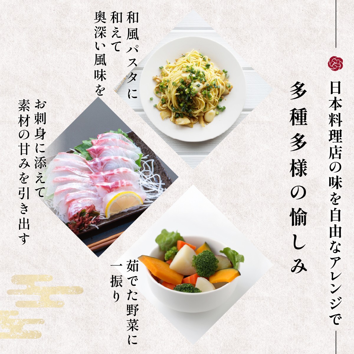 ・パスタや炒め物: 和風パスタや野菜炒めの味付けに使うと、手軽に奥深い風味を出すことができます。