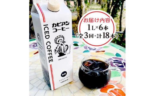 <毎月定期便>カピアンオリジナルアイスコーヒー1L×6本(計6000ml)全3回【4073670】