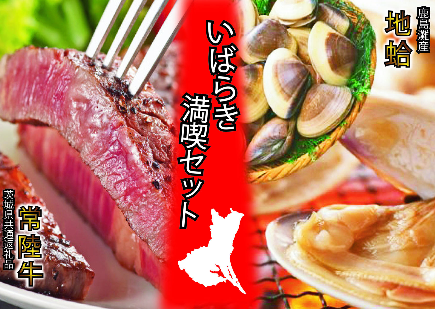 鹿嶋市が誇る名物海産物「鹿島灘はまぐり」と「常陸牛サーロイン」が一緒に楽しめる“いばらき満喫”セット♪