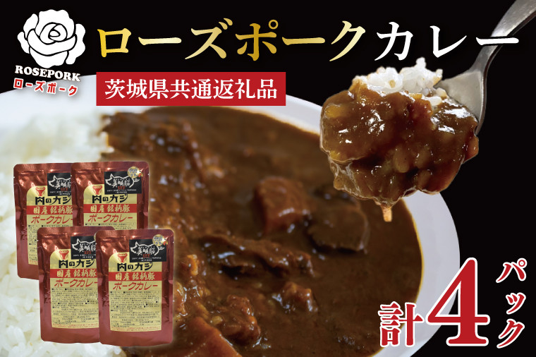 忙しい日は美味しいレトルトでポークカレー♪ 【茨城県共通返礼品】【国産銘柄豚】精肉店が作るこだわりの逸品!【ローズポーク】カレーセット計4パック ポークカレーレトルト 時短 保存食 備蓄 (KCK-73)