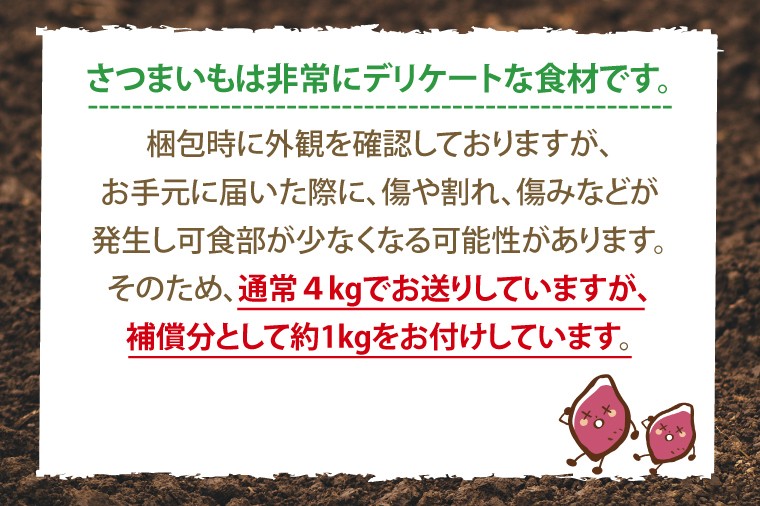 ほりたて お芋 ふくむらさき 鹿嶋市産 焼き芋 天ぷら ねっとり おいしい 【先行予約】鹿畑ポテト小屋の生さつまいも ふくむらさき 計 約5kg(4kg+約25%補償分)【鹿嶋市 減農薬 熟成 貯蔵 サツマイモ 紫いも 甘い 5キロ 10000円以内 1万円以内】 (KBR-12)