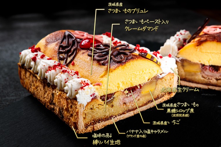茨城県産さつまいもを丸ごと使用した“とろっ”と食感のさつまいもペーストをつかったブリュレをたっぷりのせて仕上げました。