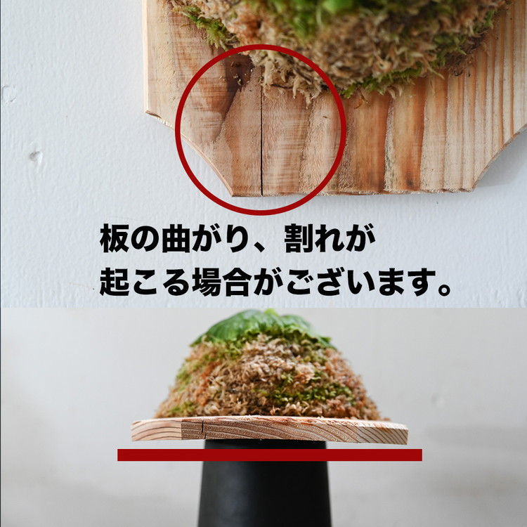 無垢材のため、割れや板の曲がりが発生いたします。バーナー等で焼いていただくと耐久性が高くなりますが、ほとんどの板で曲がり、また一定の割合で割れが起こります。無垢材ゆえの特性として、あらかじめご了承ください。