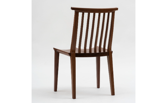 落ち着いた色合いと美しく重厚な木目が人気の高級木材、ウォールナット無垢材を使用したチェアです。一本ごとに異なる形状を持つスポークと、計算され尽くした後脚と笠木の角度が織りなす抜群の背当たり感が座る人の寛ぎの時間をやさしくサポートします。空間の顔ともなりうるデザインを持ちながら、場を引き締める名脇役にもなってくれる存在感はまさに日本の住空間にピッタリの一脚となっています。