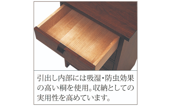 引き出し内部には桐を使い、衣類箪笥としての実用性も高めています。