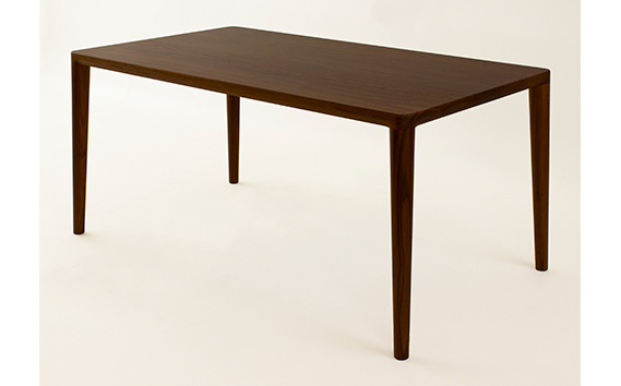 丸く絞った優美な脚を天板の四隅に配置することにより、脚内の空間を広くすることで、大人数でもゆったりと使用できるよう配慮した「テーブルエミネント」と、職人の持つ高度な木組みと削り出しの技術で作られた「アームチェアグランデ」。