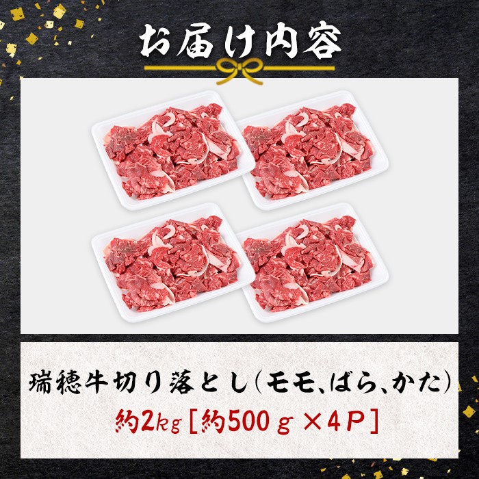 瑞穂農場の丹精込めた常陸牛、極上の味わい 瑞穂牛切り落としセット 約2kg 牛肉 ブランド牛 瑞穂牛 モモ ばら かた 赤身 霜降り 部位ミックス 国産 切り落とし 国産牛 柔らか 牛丼 肉じゃが 【(株)フロンティアロード】 【ho1449】