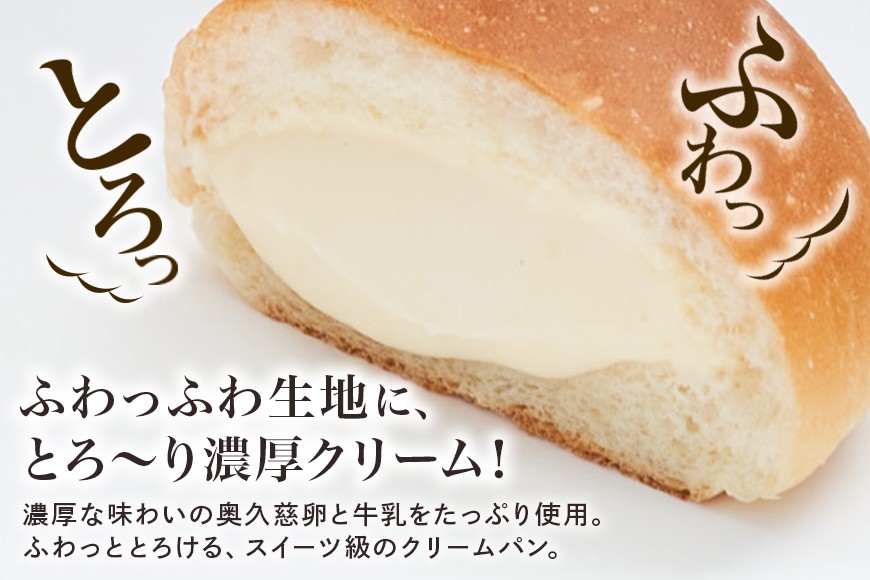 茨城県産小麦を100%使用、濃厚な味わいの奥久慈卵と牛乳をたっぷり使用したなめらでコクのあるカスタードクリームが特徴のクリームパン。