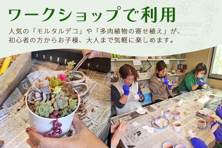 ・「モルタルデコ」や「多肉植物の寄せ植え」などのワークショップにもご利用いただけます。