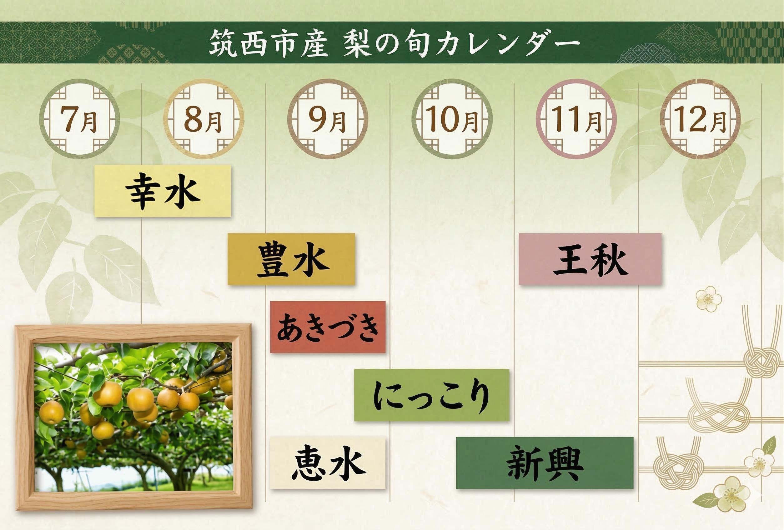 「豊水」はやや柔らかめの果肉に果汁たっぷり、酸味と甘みのバランスがよい品種です。みずみずしく濃厚な味わいが楽しめます。