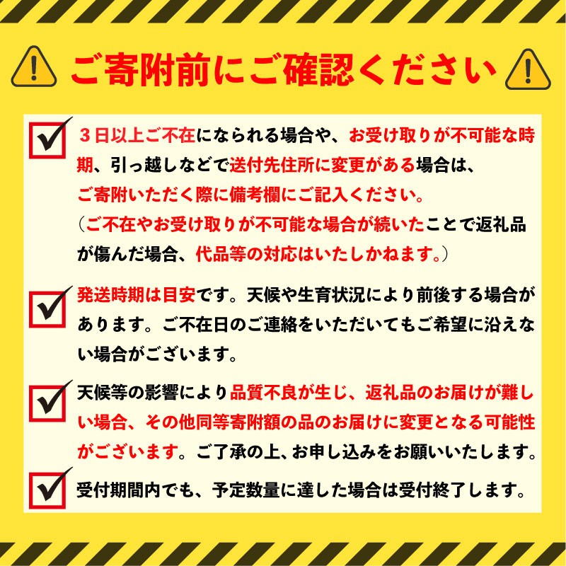 万全を期して返礼品をお届けしていますが、万が一、不備等があった場合は返礼品受け取り時に、写真(画像)を添付のうえ電子メールにてご連絡ください。