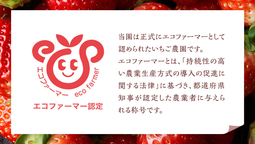 当園は正式にエコファーマーとして認められたいちご農園です。