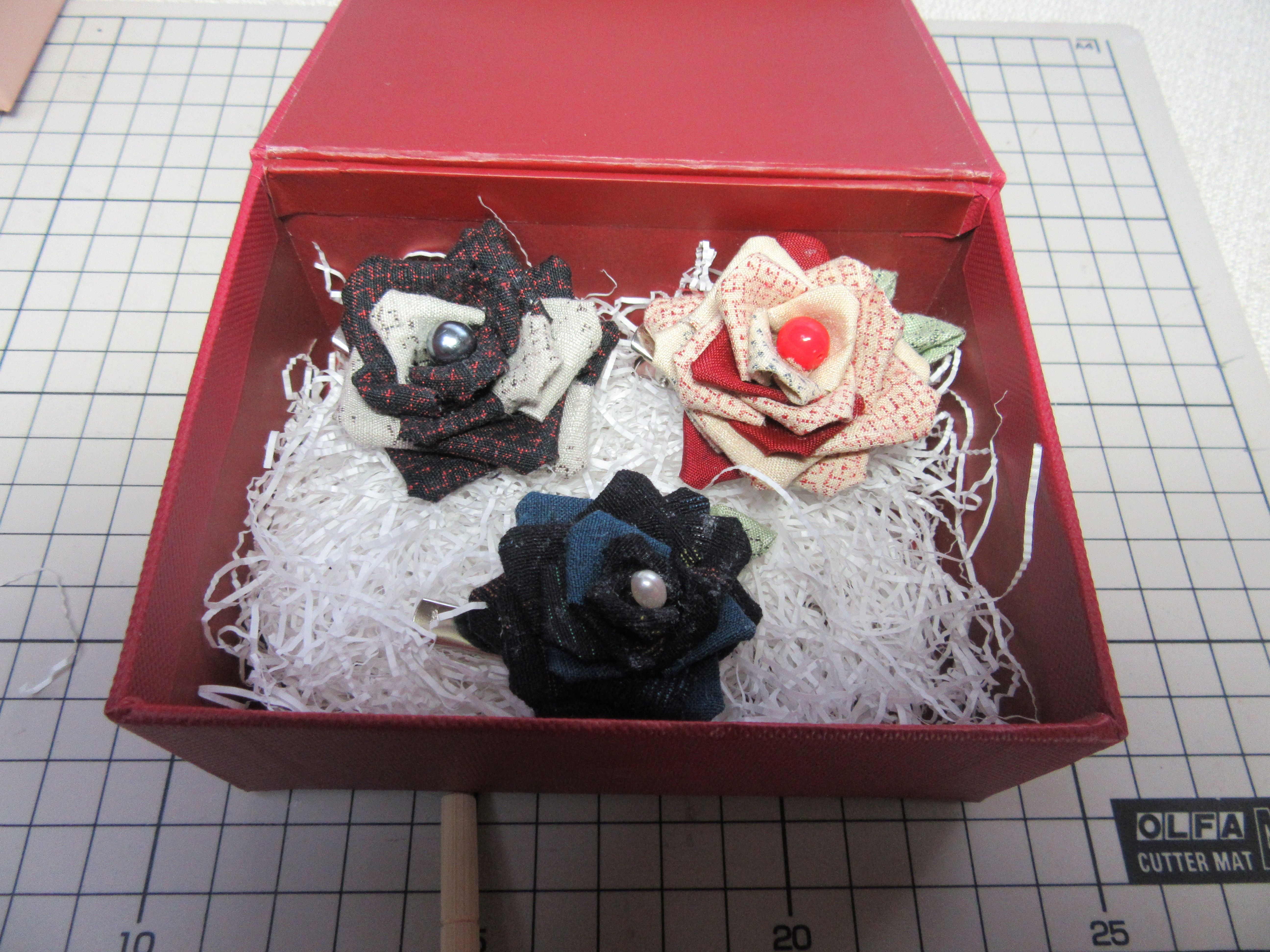 結城紬の風合いを損ねることなく温かみのあるコサージュを作りました。